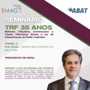 “No próximo dia 07, quinta-feira, será realizado o seminário “Estudos de Direito Tributário em homenagem aos 35 anos do Tribunal Regional Federal da 3ª Região”. Ao final do evento, haverá coquetel de lançamento de livro com o mesmo título do seminário, ambos sob coordenação conjunta dos Desembargadores Federais Marisa Santos e Nino Toldo e dos advogados Halley Henares Neto e Mário Costa.
