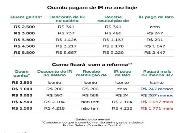 Além do reajuste insuficiente, o projeto exclui do regime de desconto simplificado os contribuintes com renda anual acima de R$ 40 mil. Isso afeta aquelas camadas da classe média que não possuem gastos significativos com saúde e educação para deduzir do imposto a pagar. Na prática, portanto, essas pessoas sofrerão aumento efetivo de tributação. Segundo a SETECO Consultoria Contábil, aqueles com rendimentos de R$ 4,5 mil e R$ 5,5 mil, sofrerão aumentos de R$ 1.057 e 1.771, caso não possuam gastos dedutíveis.